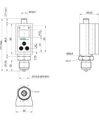 | Funktion | elektronischer Druckschalter mit Anzeige; basierend auf Keramikmesszelle | |