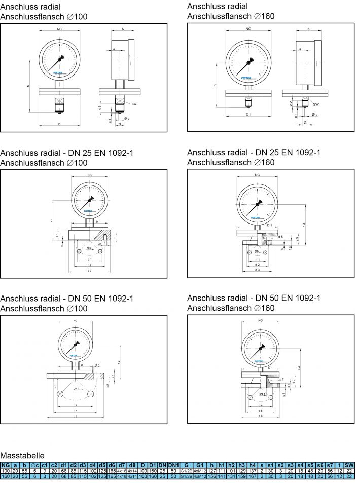 | Druckbereiche | 0 - 1 bar; 0 - 1,6 bar; 0 - 2,5 bar; 0 - 4 bar; 0 - 6 bar; 0 - 10 bar; 0 - 16 bar; 0 - 25 bar |