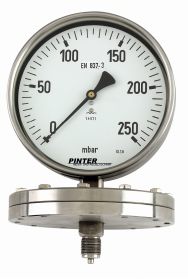 Manometer der P3-Serie sind Druckmessgeräte mit Plattenfeder. Das Messglied besteht aus einer dünnen, gewellten Edelstahl- bzw Durathermmembrane, die zwischen zwei Flanschen montiert ist.