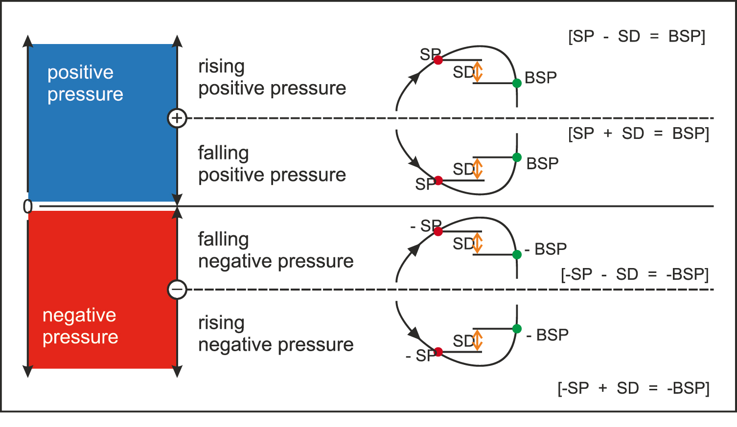 Each switching contact has a setpoint (● SP). This setpoint corresponds to a pressure value setted on the pressure switch.
